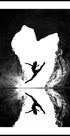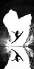 This striking black-and-white artwork captures a ballerina leaping gracefully inside a cave shaped like a heart, with her reflection mirrored in still water. The dramatic silhouette blends dance, nature, and romance, creating a powerful visual of passion, elegance, and timeless artistic beauty.