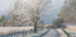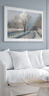 This peaceful winter landscape captures a frosty morning along a quiet country road, with a snow-dusted tree glowing in soft pastel light. The muted tones and gentle atmosphere evoke serenity, freshness, and the quiet beauty of dawn, making it a calming artwork for seasonal and nature-inspired walls.