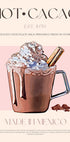 Wrap your walls in café warmth with this retro illustration by Nazma Khokhar: a creamy mug of hot cacao gently steaming against a soft pink backdrop, framed by bold 1950s-style lettering. Rich browns and delicate blush tones create a cozy, nostalgic vibe—perfect for kitchens, coffee corners, and winter days.