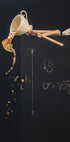 This creative still life blends science and art, showing a cup of coffee spilling mid-air beside a chalkboard with equations on free fall. Combining motion, mathematics, and everyday objects, it creates a witty and thought-provoking artwork that celebrates curiosity, physics, and the beauty of ideas.