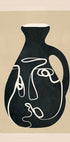 An elegant abstract still life: a sculptural vase outlined in flowing, confident lines, where a subtle face emerges between curved forms. Warm terracotta, sand, and charcoal tones stack in soft geometric shapes, balancing negative space to create a serene composition of modern minimalism. With hand-drawn texture and a quiet, contemplative mood.