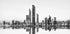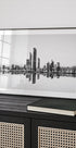 A striking black and white cityscape poster of Abu Dhabi, capturing the modern skyline reflected perfectly on the calm water. With its sleek towers, urban lights, and mirrored composition, this artwork celebrates architectural elegance and the vibrant spirit of the UAE’s capital.