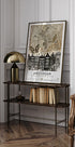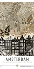 Drift into Amsterdam with this vibrant collage by Simon Goggin: a retro city-break homage layering canal rings, slender gabled houses, stone bridges and rippling waterways over bold map textures and typography. A playful cityscape of bikes, boats and golden light, it captures the Netherlands’ capital’s timeless wanderlust.