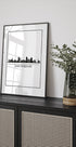 Amsterdam unfolds in crisp black-and-white linework: slender canal houses and gabled rooftops beneath a night sky, while a classic windmill and delicate tulips nod to Dutch heritage. Minimal yet evocative, this skyline illustration is by Kristina N. of SoulArt Shop. A refined tribute to Amsterdam’s character and charm.