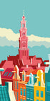 Remko Heemskerk captures Amsterdam’s Westerkerk rising over the Jordaan with clean lines and a bold, modern palette. The slender spire watches over canal houses along the Prinsengracht, evoking calm mornings, crisp skylines, and the city’s timeless rhythm in a striking contemporary cityscape. A tribute to Amsterdam’s architectural heritage.