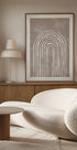 A minimalist abstract poster featuring hand-drawn arch lines in crisp white over a soft beige textured background. The organic geometry and neutral tones create a calming balance, perfect for Japandi, Scandinavian, or modern minimalist interiors.