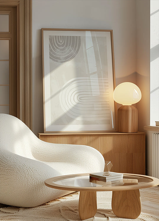 A soothing minimalist poster featuring two hand-drawn arches in soft beige and white tones. The organic shapes and calming symmetry create a balanced composition, perfect for Japandi, Scandinavian, or modern interiors.