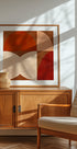 Mid-century warmth meets Nordic restraint in this abstract by Ana Rut Bre. Terracotta, rust, tan and snow-beige shapes stack and drift across a softly weathered ground, with torn-paper edges and painterly scuffs. A quiet study of earth, frost and time—retro, contemporary, and perfectly serene. Ideal for autumnal interiors.