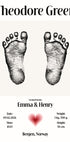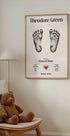 A timeless and elegant personalized poster featuring baby footprints and custom birth details including name, date, time, weight, height, and birthplace. The clean minimalist design with a soft neutral background makes it a perfect keepsake for new parents and a beautiful addition to any nursery or family wall.