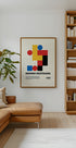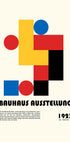A striking Bauhaus exhibition poster from 1923, featuring bold geometric forms in red, blue, yellow, and black. This vintage-inspired design celebrates the Bauhaus movement with abstract shapes, clean lines, and a minimalist layout. A timeless piece of art deco and modernist design history.