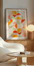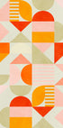 Playful Bauhaus geometry in soft pastels—spheres, arcs and modular blocks—dance across the page with sunlit pinks, sage, and warm orange. Ana Rut Bre channels mid-century optimism and modern clarity, weaving texture and rhythm into a retro-fresh statement piece that brightens halls, studios, and serene living spaces with effortless charm.