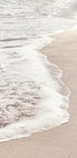 A calming minimalist photograph of gentle ocean waves washing across the sandy shore. With its soft beige tones and delicate textures, this artwork captures the peaceful rhythm of the sea and the timeless beauty of simplicity.