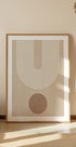 A stylish minimalist poster featuring clean white arches paired with a solid brown circle, set against soft beige tones. This geometric composition reflects mid-century modern design and adds warmth, simplicity, and elegance to any interior space.