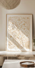 Delicate, hand-drawn blooms unfurl in soft beige across a creamy field, with slender stems, leafy sprigs, and lightly sketched petals. The minimal, balanced composition and earthy palette create a serene, organic flow that brings calm, nature-led elegance to modern, Scandinavian, and boho spaces at home.