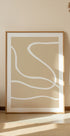A calming minimalist poster with flowing white lines on a beige background. The abstract composition radiates simplicity, harmony, and elegance, making it a timeless piece for modern interiors.