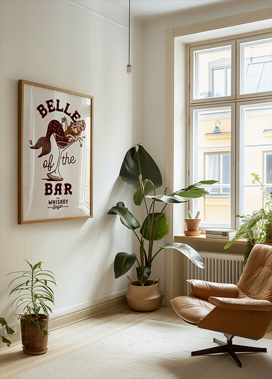 Make a splash with this retro pin‑up mermaid, perched at the bar and toasting the night with a brimming martini. Her shimmering tail, coy smile, and hourglass pose glow against a lounge backdrop, channeling mid‑century cocktail glamour. Flirtatious, fun, and irresistibly vintage—art by The Whiskey Ginger.