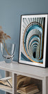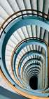 A mesmerizing photograph of a spiral staircase captured from above, creating a dizzying illusion of infinity. With its flowing curves, geometric precision, and modernist elegance, this architectural artwork makes a bold statement for any interior.