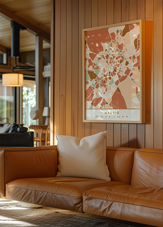 Chart the soul of Madrid with Black Maps Earth Tones 44 by Emiliano Deificus—a moody, minimalist city map rendered in deep blacks and warm, earthy hues. Fine lines trace barrios, boulevards, and winding streets, creating a layered urban tapestry that feels timeless, elegant, and quietly dramatic. A striking focal point.