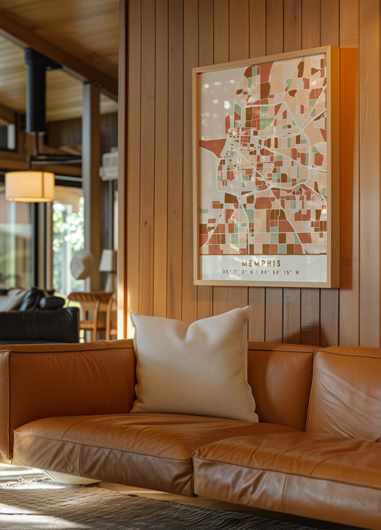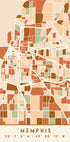 Emiliano Deificus maps Memphis in rich earth tones: deep charcoals, clay browns, and warm ochres tracing the city's gridded streets and sinuous arteries. This striking cartographic artwork turns latitude and longitude into graphic poetry, blending urban rhythm with natural texture for a bold, contemporary focal point.