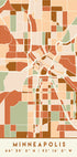 Black Maps Earth Tones 55 by Emiliano Deificus distills Minneapolis into a brooding cartographic artwork: a dense weave of streets, blocks, and river contours in inky black and warm ochres. Latitude and longitude whisper through the grid, merging city texture with abstract geometry for a refined urban mood.