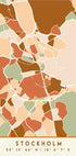 A moody Stockholm city map by Emiliano Deificus, where inky blacks meet layered earth tones. Islands, waterways, and bridges weave a refined urban lattice, balancing geometry and quiet flow. Minimalist contours echo the archipelago’s rhythm, casting a Scandinavian calm and nocturnal glow. Streetlights glint along shorelines.