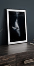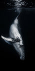 A mesmerising underwater portrait of a humpback whale, suspended in a velvet-black sea. Silvery light skims its ridged back as it rises toward the surface, balancing serenity with raw power. Stark contrast and fluid motion give this photographic artwork by Barathieu Gabriel a dramatic, modern edge.