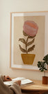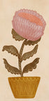 A charming watercolor floral artwork featuring a delicate pink blossom in a golden vase. With a textured vintage style and soft pastel tones, this hand-painted piece combines retro design with botanical elegance, making it a timeless choice for floral decor.