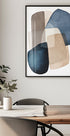 A modern abstract watercolor artwork featuring overlapping geometric shapes in blue, beige, and earthy tones. The soft painterly textures and transparent layers create depth and harmony, making it a perfect piece for contemporary and minimalist interiors.