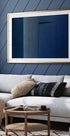 A minimalist architectural artwork in shades of blue, highlighting geometric shapes and a mysterious doorway. The play of light and shadow creates an atmosphere of elegance and intrigue.