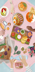 A lively illustration capturing the joy of brunch with friends around a colorful table. From ramen and tacos to croissants and fresh fruit, this artwork celebrates global cuisine and togetherness, highlighting food as both nourishment and a shared experience of love and friendship.