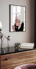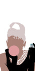 A playful modern twist on a classic icon, this illustration depicts a glamorous woman with pearls and gloves blowing bubblegum. The minimalist style and bold contrasts blend vintage elegance with cheeky pop art, making it a striking piece for fashion lovers and contemporary decor.