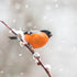Amid swirling snow, a vivid bullfinch perches on an icy twig, its coral breast glowing against a soft, wintry blur. This serene winter scene by artist Annie Keizer captures the hush of snowfall, the fragility of frost-kissed branches, and the quiet resilience of wildlife in the cold. A perfect touch of Nordic calm and festive winter magic.