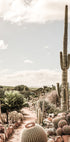 A serene desert-inspired landscape featuring towering cacti and lush succulents under a soft, cloudy sky. This botanical photograph captures the tranquil beauty of a cactus farm, combining natural textures, earthy tones, and a sense of timeless calm. A perfect print for nature and plant lovers.
