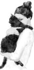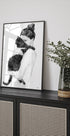 A delicate black and white watercolor-style illustration of a woman embracing her cat. This tender artwork conveys love, intimacy, and the timeless bond between human and pet, making it a perfect piece for minimalist and animal-inspired interiors.