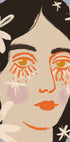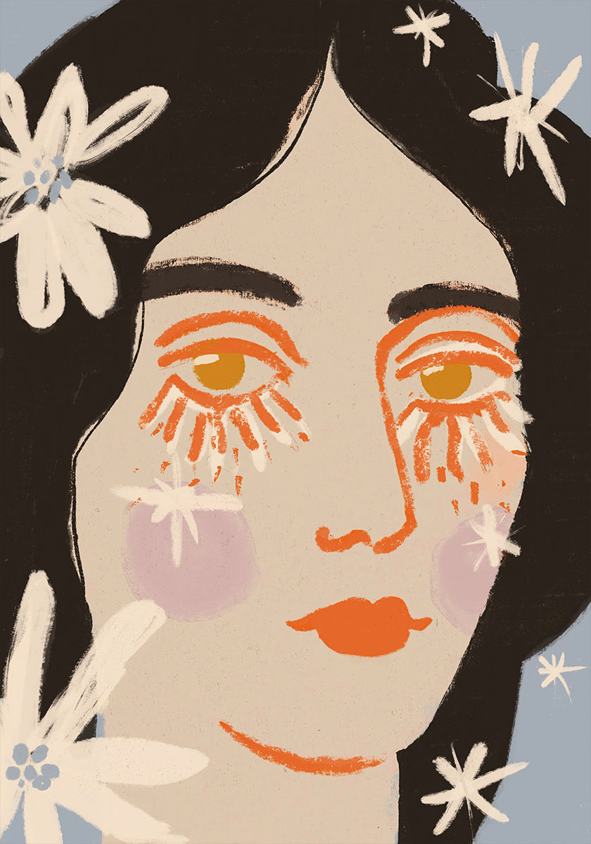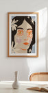 Cheeky calm captures a close-up female portrait in soft pastels: a serene gaze with a sly, playful glint. Painterly strokes and a minimal backdrop create a refined, modern mood, balancing elegance and attitude. A contemporary illustration by Treechild, perfect for art-forward, calming interiors and minimalist gallery walls.