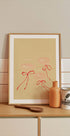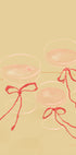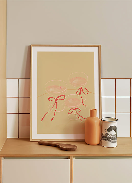 Raise a toast with Cheers To Us by Katharina Puritscher: two slender champagne flutes meet in a delicate clink, traced in minimalist black line and accented with a blush-pink ribbon and bow. Effortlessly chic and celebratory, it brings festive sparkle to bar carts, dining nooks, weddings, and New Year moments.