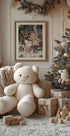 Step into a whimsical winter wonder with Christmas Treehouse by Olena Kovalova: a cozy treehouse twinkling with warm lights, snow-laden branches, and vintage holiday hues of red, green, and teal. Playful woodland friends—a curious bunny and a gentle bear—gather to share the season’s glow. A heartwarming scene for cozy holiday nights.