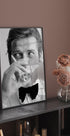 This iconic black and white poster features Roger Moore, famous for his role as James Bond, with the classic quote "Shaken, not stirred." The striking monochrome design captures Moore's elegant and sophisticated personality, making this poster a must-have for fans of classic cinema and James Bond enthusiasts.