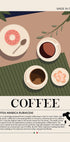 This Italian-themed coffee poster beautifully illustrates a top-down view of coffee cups, a dessert, and sugar cubes on a table. It highlights the history and process of coffee production, focusing on the beloved espresso tradition perfected in Italy. Perfect for cafés, coffee lovers, and Italian culture enthusiasts.