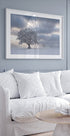 Step into a breathless winter dawn with Nina Pauli’s Cold morning. A solitary tree rises from a frost-laced field, while pale sun and feathered clouds seep through drifting mist. Muted blues and silvers hush the horizon, inviting reflection and calm in a landscape suspended between night and day. Perfect for serene interiors.