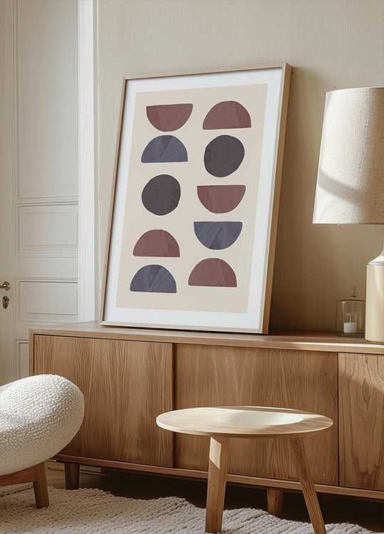 An elegant abstract collage of balanced geometric shapes in warm beige, sand, and charcoal, Collage 04 distills modern design into a serene statement. Overlapping forms, soft edges, and gentle shadows create depth and rhythm, making it a versatile focal point for minimalist, Scandinavian, or contemporary spaces.