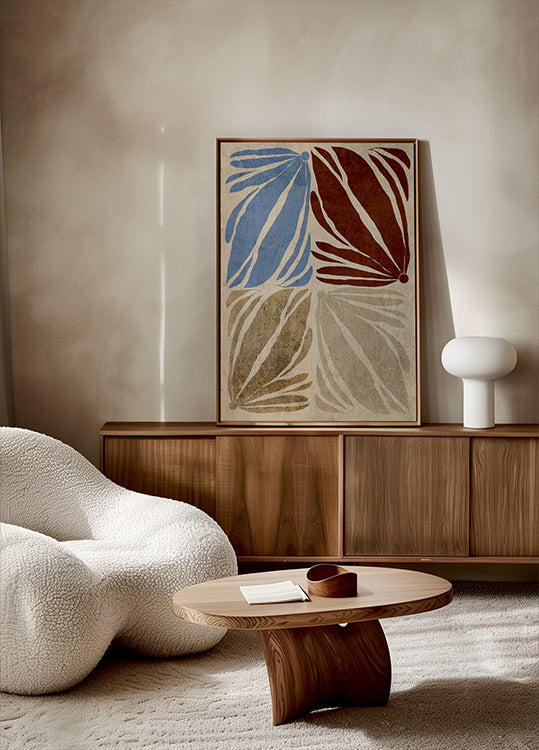 Four abstract leaves form a harmonious quartet, painted in soft pastels and gentle earth tones with subtle, painterly texture. Clean shapes and balanced rhythm create a serene focal point—minimal yet warm. A contemporary botanical accent that brings calm color and modern nature energy to any room, beautifully.