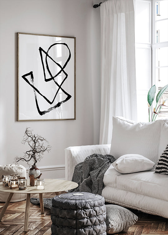 Confusion by Pictufy Studio II is a striking black‑and‑white study of motion and order. Calligraphic lines collide with geometric shapes, weaving a rhythmic maze across a crisp white field. Minimal yet dramatic, it captures the tension between structure and spontaneity, inviting endless interpretations.