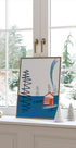Drift into calm with this contemporary illustration by Nicholas: a red cabin nestled among pine trees, its chimney smoke curling into a cool blue sky. The still lake mirrors the scene in crisp geometric shapes, evoking Scandinavian minimalism and quiet winter nights—perfect for serene, modern spaces.