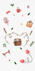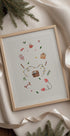 Bring home cozy holiday magic with this whimsical watercolor by Xuan Thai: a kawaii winter scene brimming with candy swirls, lollipops, mittens, and Christmas lights around a gingerbread house. Reindeer antlers, gift boxes, and soft snow tones create a playful glow—perfect for kids' rooms and festive corners.