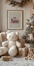 Snuggle into the season with this charming watercolor by Xuan Thai: a cozy room aglow with a twinkling Christmas tree, soft sofa and cushions, and a sweet teddy bear waiting by the lights. Gentle beige tones and snowy touches create a calm, festive mood—perfect for nurseries, kids’ rooms, and winter corners.