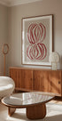 Crimson Echoforms by THE MIUUS STUDIO is a refined abstract still life: stacked vases and a bowl distilled into crimson arcs, rectangles, and soft stripes on warm beige. Watercolor textures and clean linework create soothing balance, merging retro nostalgia with contemporary minimal elegance. An elegant focal point for modern walls.