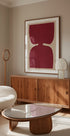 Crimson Reflection by Vitor Costa captures bold crimson shapes gliding across a soft beige field, their mirrored forms balancing geometric precision and organic flow. A contemporary, mid-century nod, it brings warmth, contrast, and serene movement to any modern interior. Ideal for minimalist, retro, or Scandinavian decor.