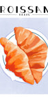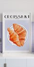 A charming food illustration celebrating the French croissant, served on a plate with warm tones of golden brown. With "Croissant Paris" written above in elegant typography, this artwork captures the spirit of French cafés and breakfast culture. A delightful print for kitchens, dining areas, or anyone who adores Parisian style and pastries.