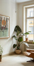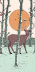 Step into a serene winter woodland where a lone stag stands among slender birch trees, bathed in soft sunrise glow. Clean lines and subtle geometry shape the misty pines and drifting snow, blending Japanese-inspired minimalism with warm, woodland charm—perfect for calm, contemplative spaces. A gentle ode to nature's quiet magic.